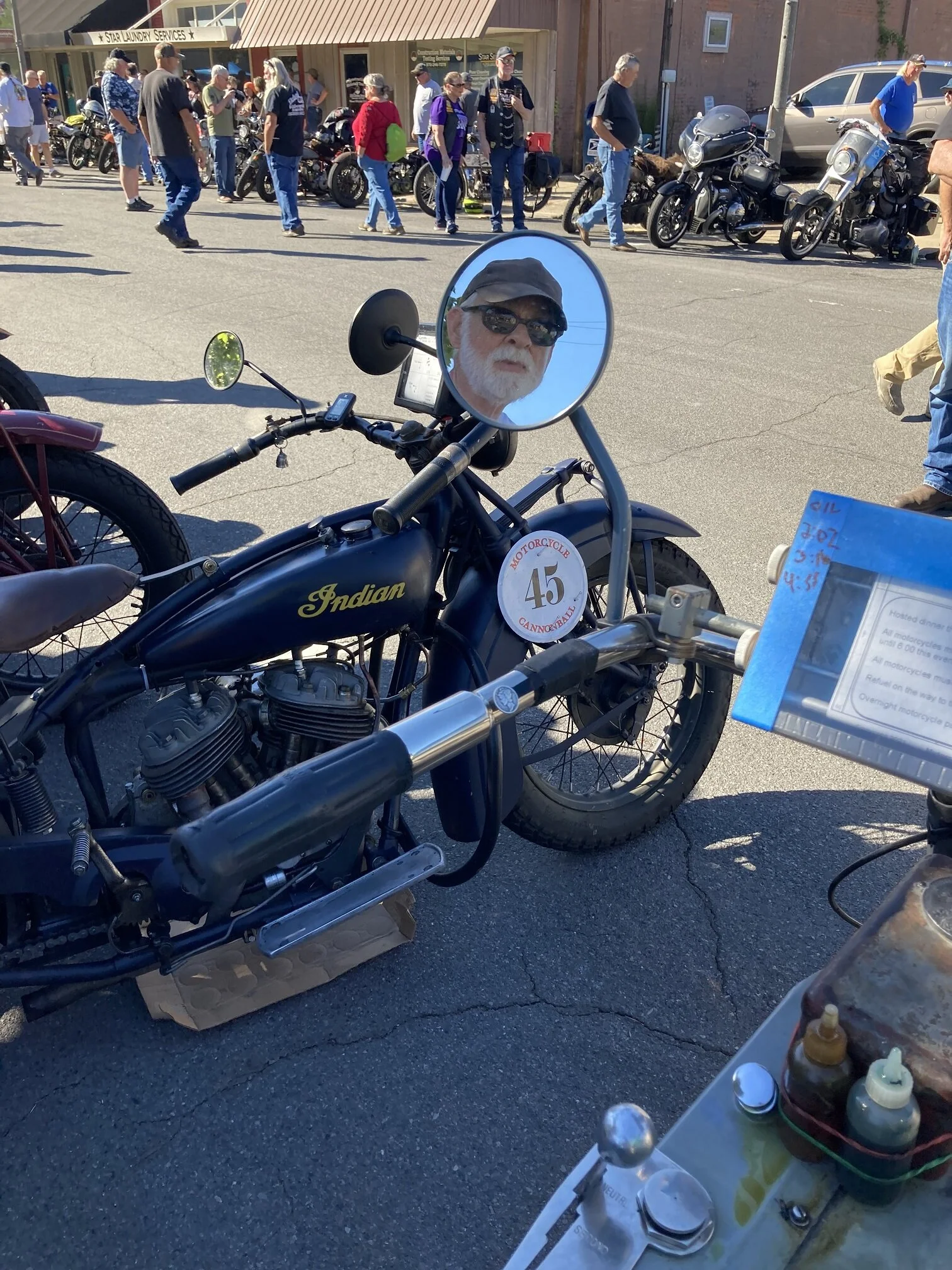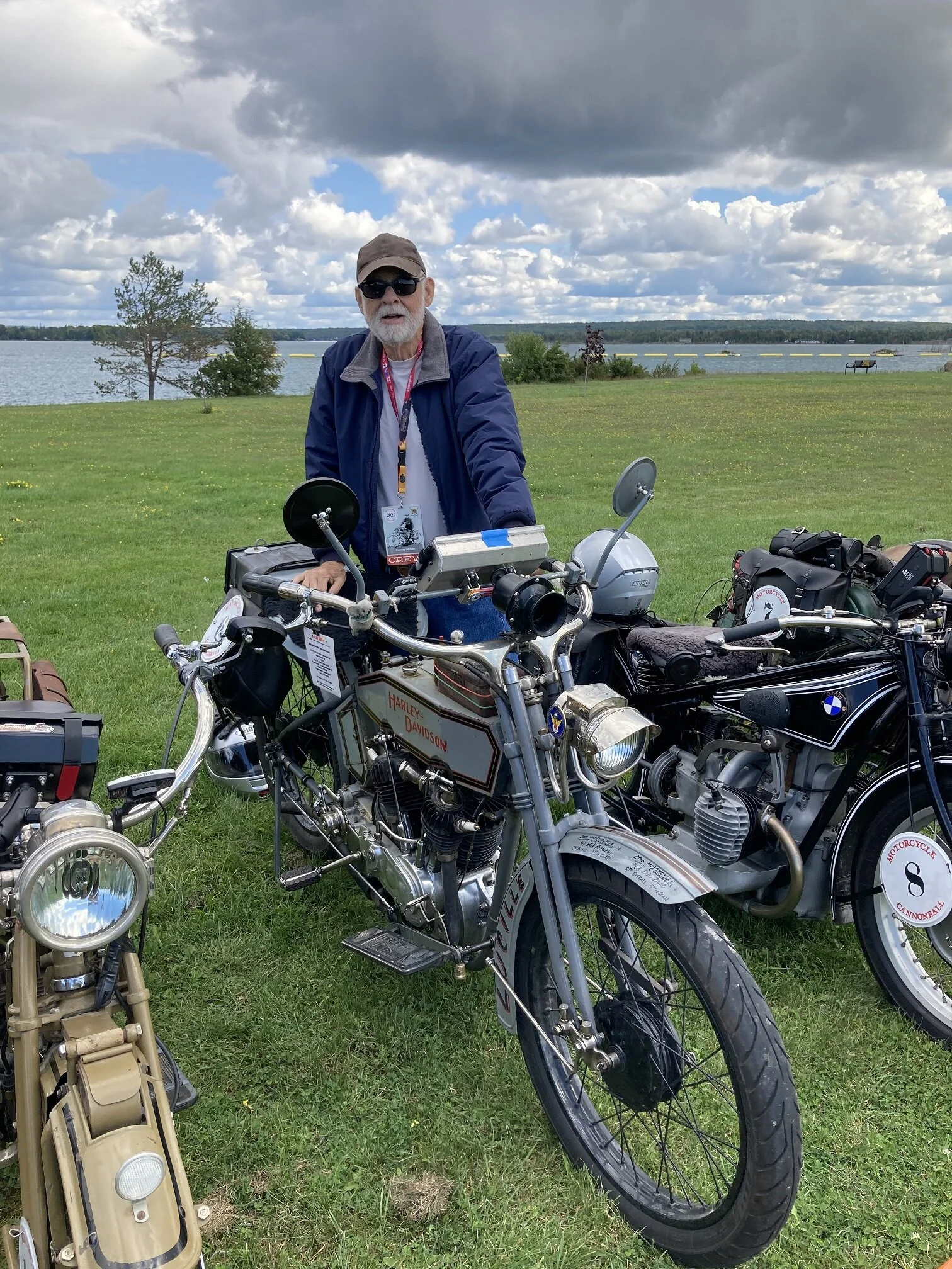 Here I am with my good friend Victor Boocock. He is riding a 1914 Harley Davidson 10E twin that he has owned since the 70’s. In a few days he turns 79.