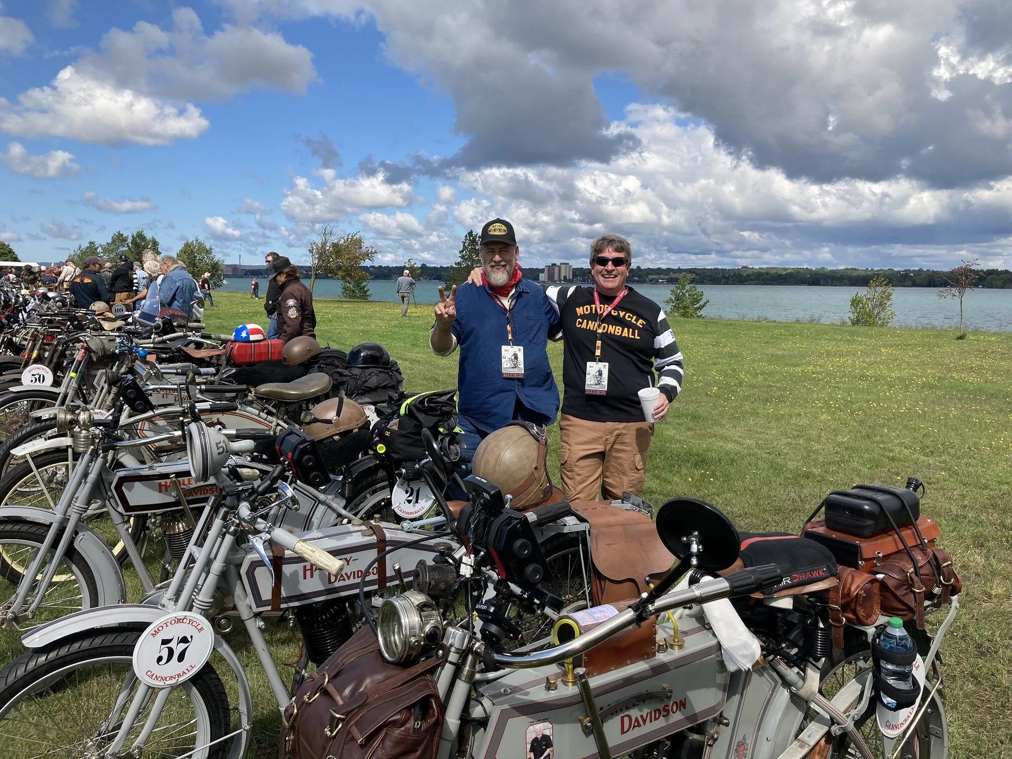 George Banks and me. During the 2018 Cannonball George was support for his brother Tom. This time he is a competitor on a 1913 Harley Davidson twin.