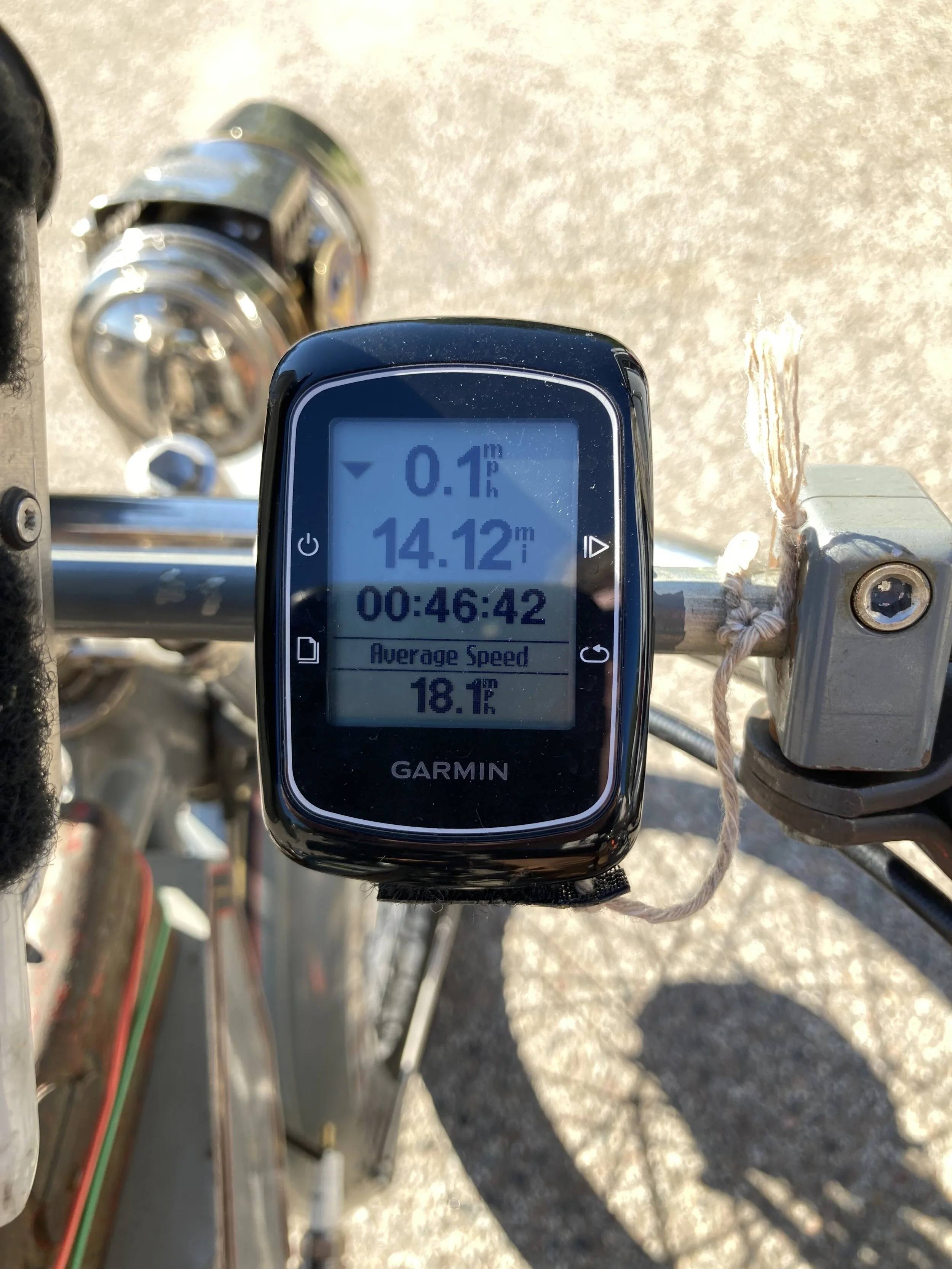 This was the mileage on the odometer when I took a forced siesta in the shade next to Lucille. Only 20 miles from the finish line and I had to call it a day