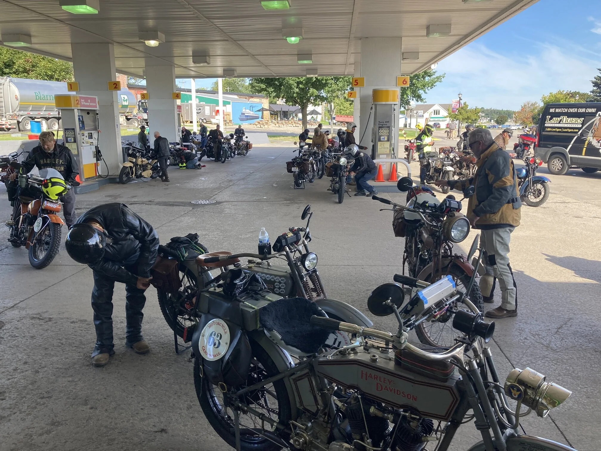 Carnage for today. Rider 112 Dennis Peterson was involved in an accident totaling his Harley Davidson JD. There could be other victims, but information is spotty at this time since all the riders did not show up at the hosted stop. That’s usually when we hear what happened during the day.