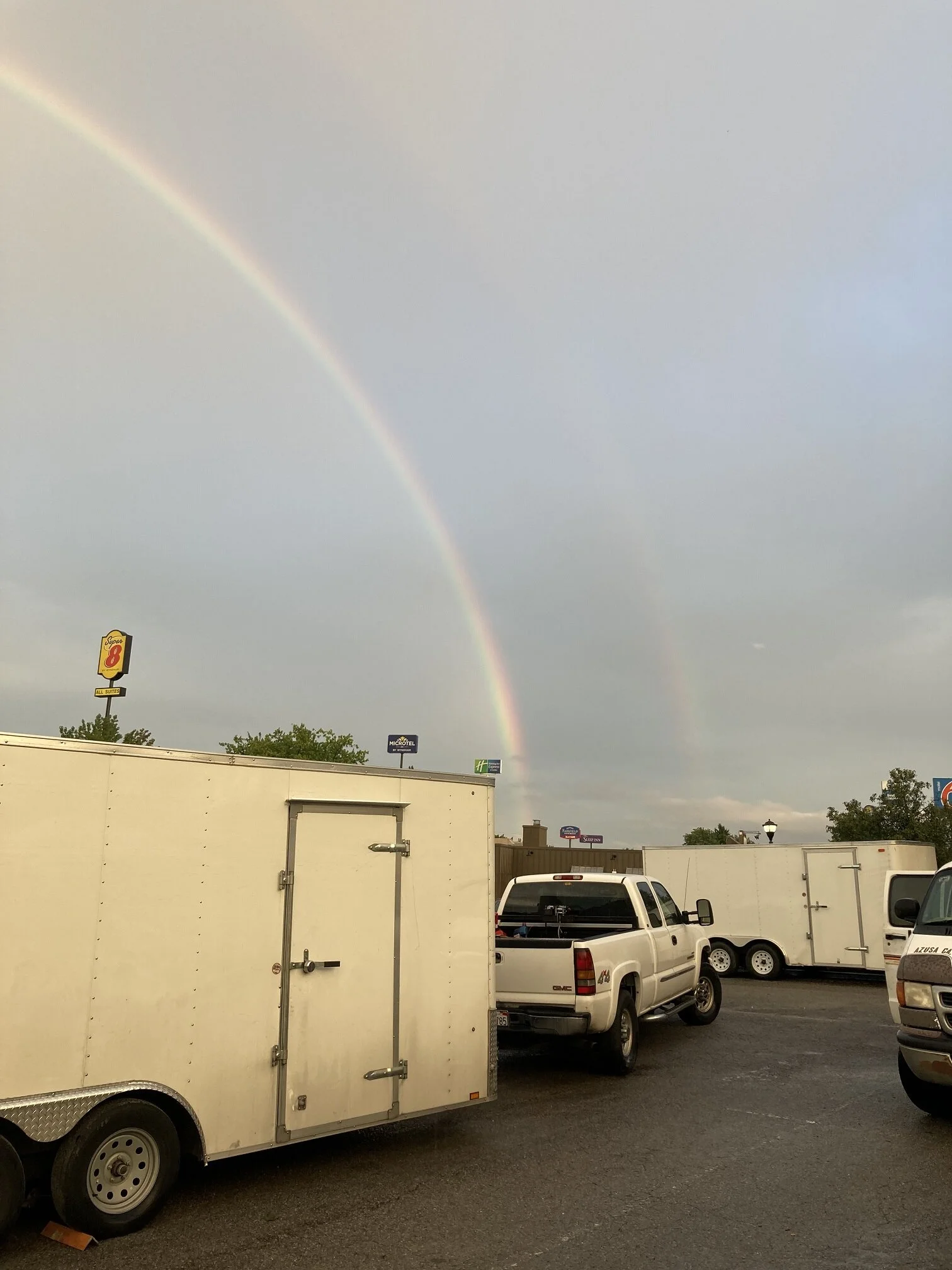 At the end of the day, we saw a hint of sunlight and a double rainbow. Hopefully this is a good omen for what’s to come.