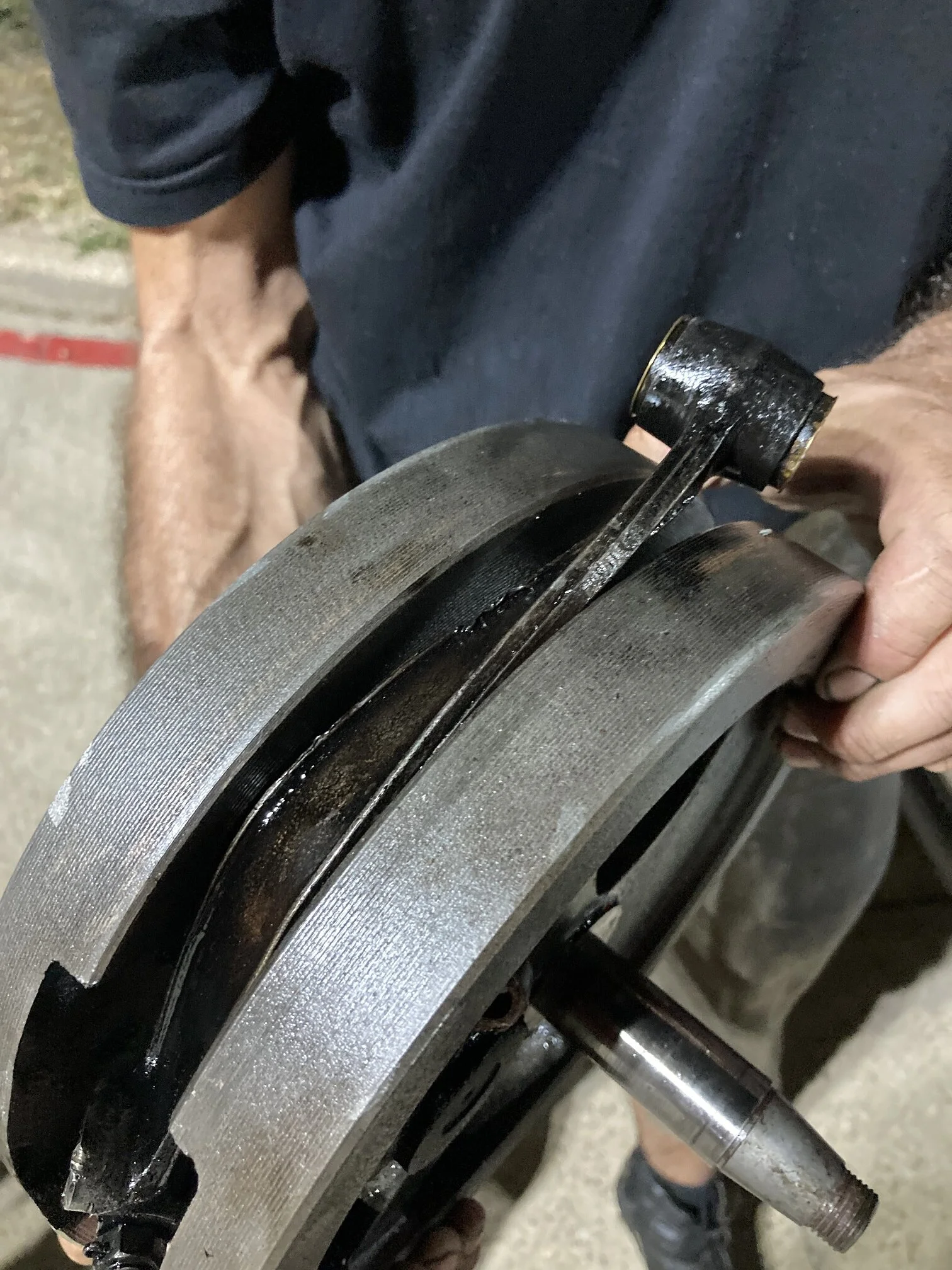 Keegan Wrieth #22 is a young first timer riding a 1914 Excelsior 7SC. This bike only has a rear brake which is a simple band in a pulley as shown in the red box below. It does not offer much stopping power. Doug Jones knows a lot about band brakes from previous Cannonballs.