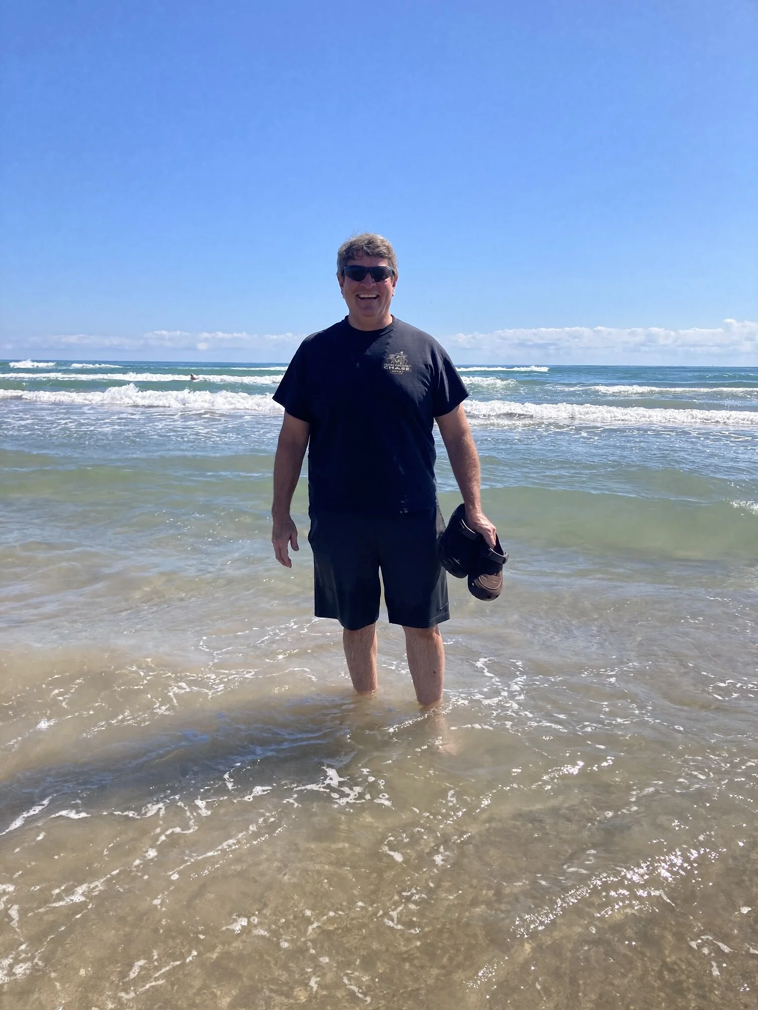 Dipping my toes in the Gulf. The trip took us From Canada to Mexico with a brief stop on the Atlantic Ocean.
