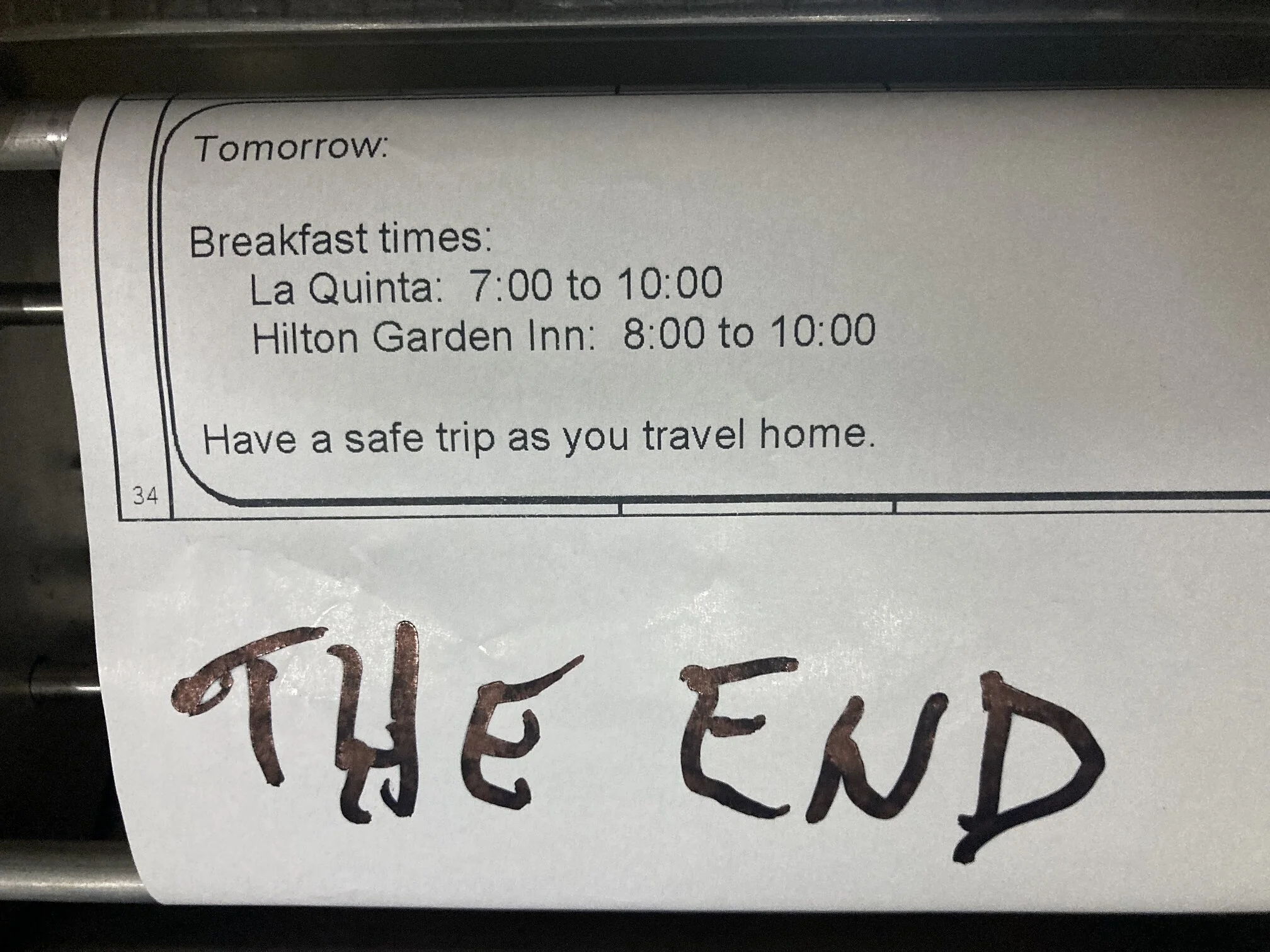 Prior to starting the day and after getting the days roll chart, Bruce Redpath (sweep driver and checkpoint operator) added an instruction. It was quite fitting and sums up 3 years of my life getting to this point. During this time Lucille had a full rebuild, road testing, a covid delay of the event, and the actual event. Boom! It’s done!