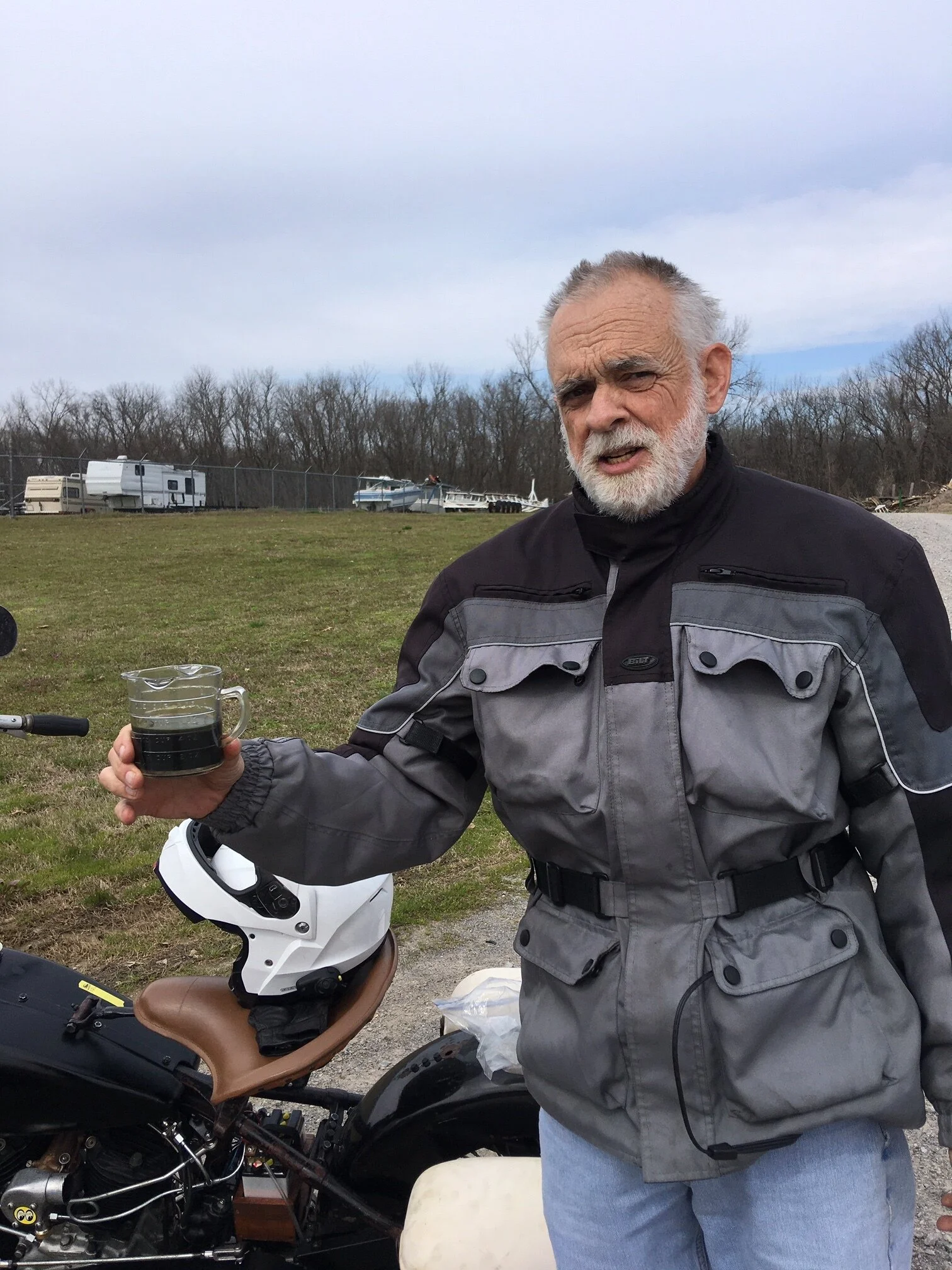 I captured Dorsey in a rare moment where he is educating the younger generation (me) on how real men drink Harley Oil! Man Up!!