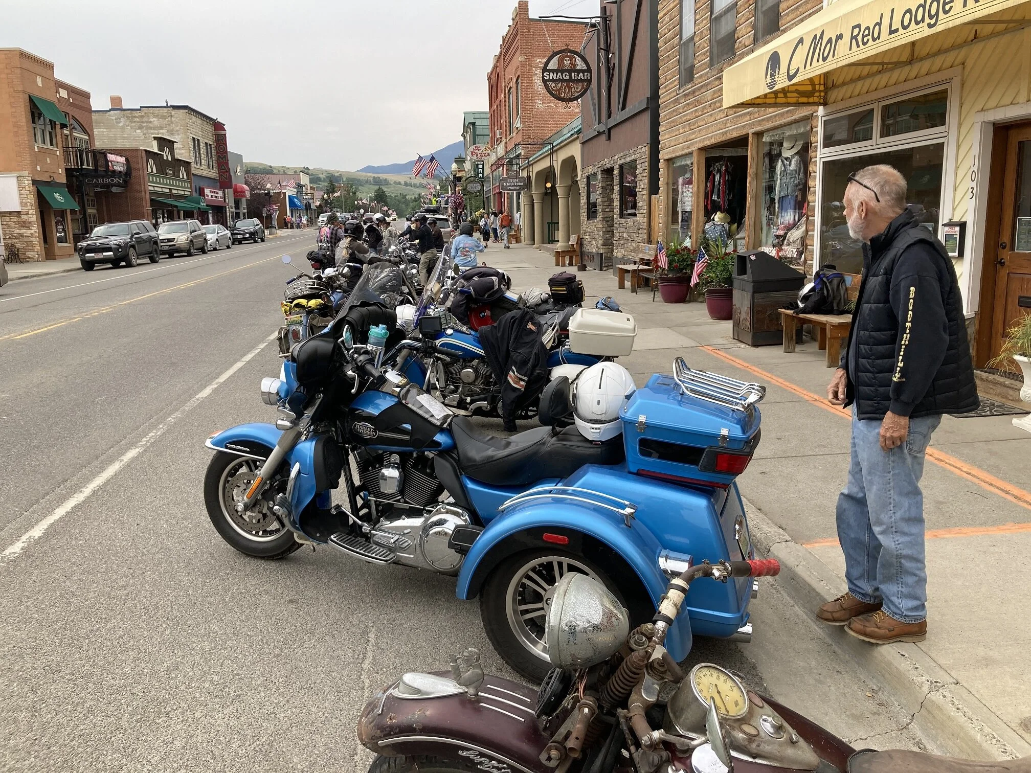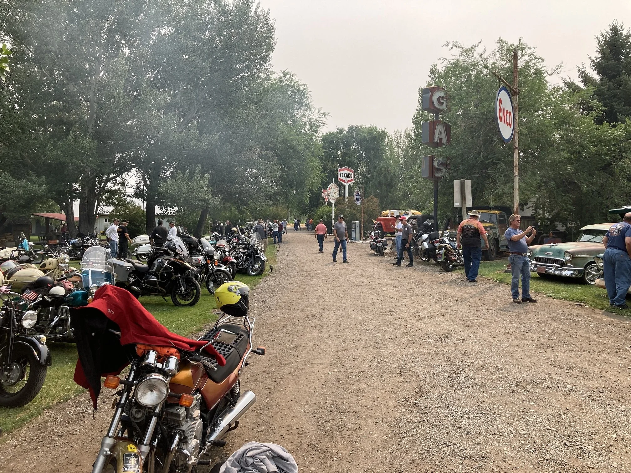 Pulling into Billings I noticed the temperature on the White Whale’s dash read 111F! It was warm out there, but it was a dry heat which was not as bad as we have it in the South. Luckily during our three days of riding the temperature did not exceed 100F. Representing the SMC was Roy Chapman, Joe Gimpel, Dorsey Uptain, and Kent Bennett. I brought along my 1947 Harley and she ran flawlessly. We did get to work on Kent’s Panhead in the evenings as he had tire issues and battery charging issues. The evening parking lot action always keeps things interesting.