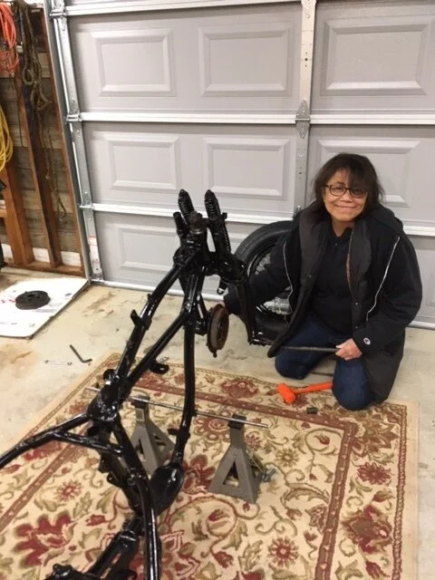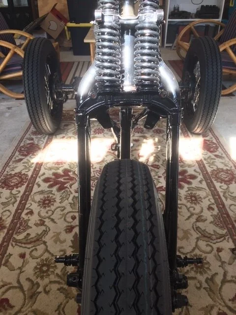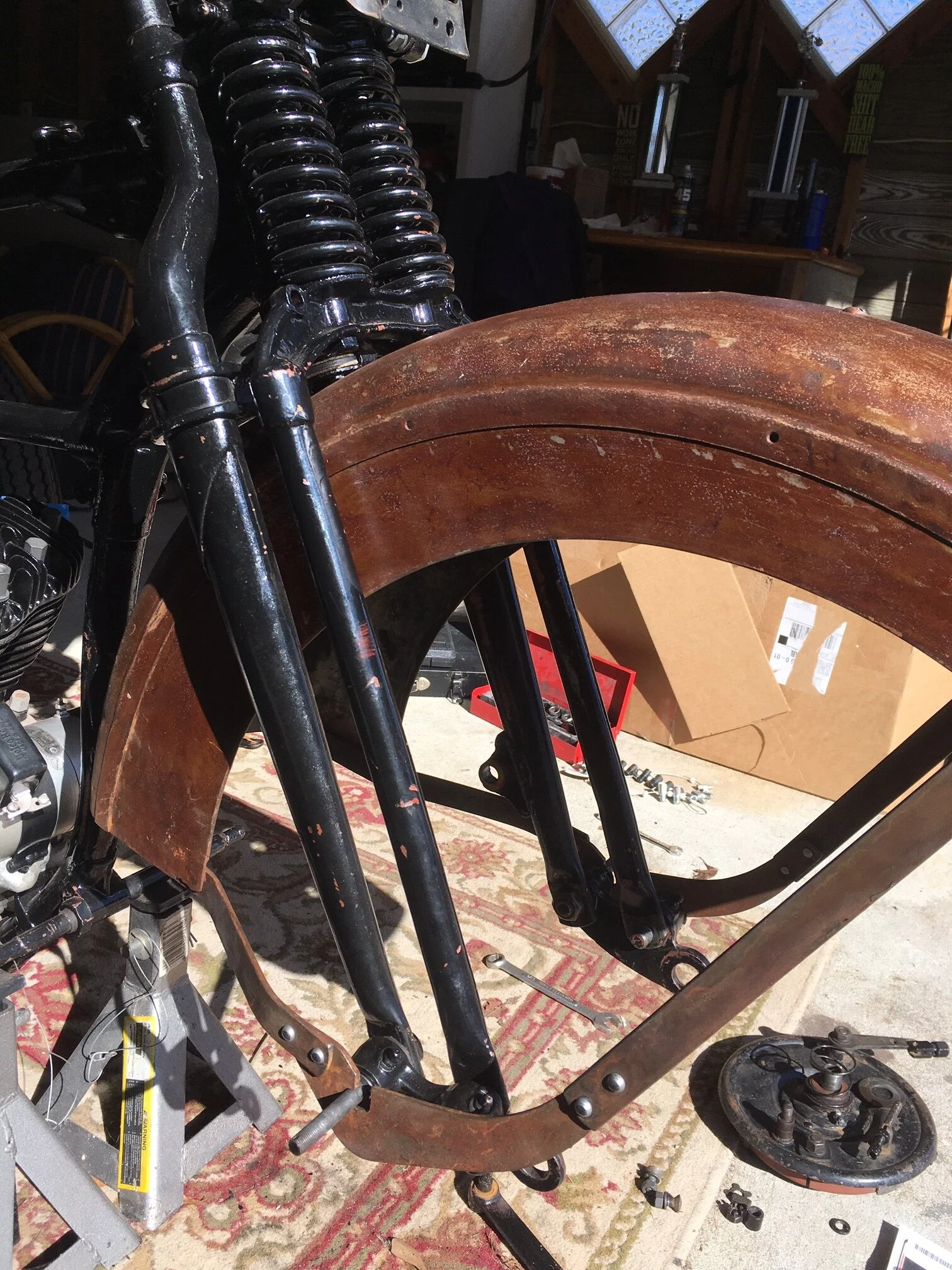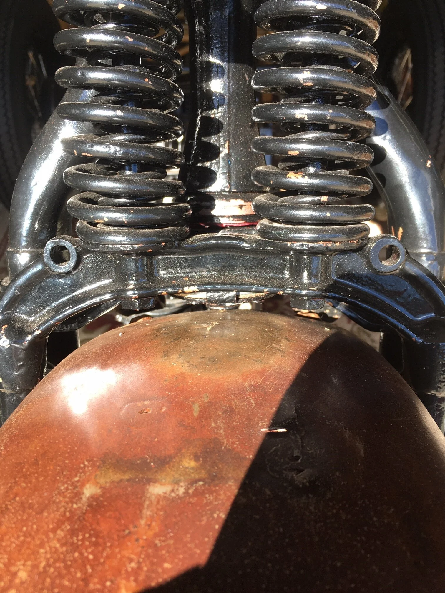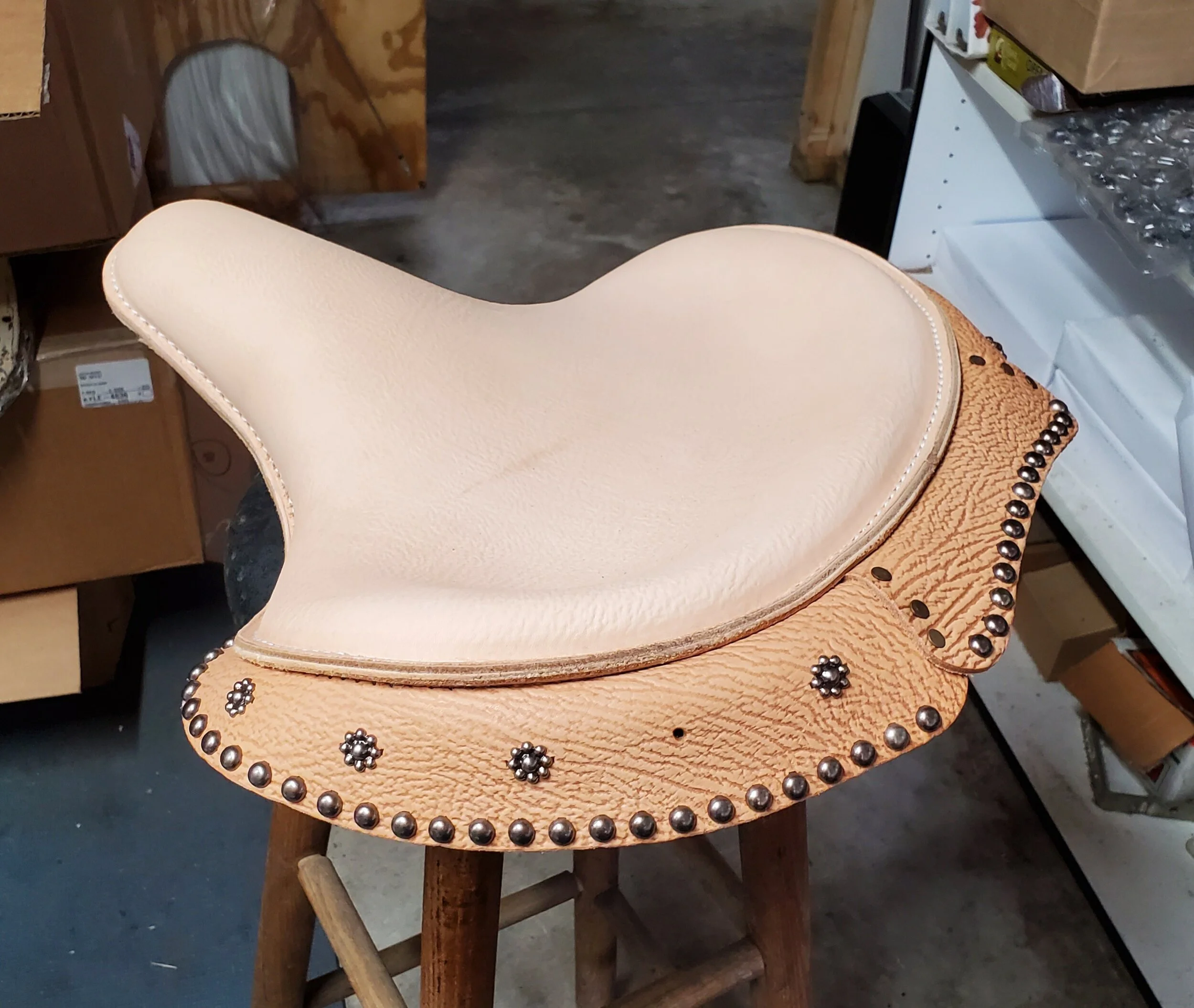 Here’s a pic of my Deluxe seat on original pan before Wayne at Heather’s Leathers applies the antique black dye. Can’t wait to see how it comes out!