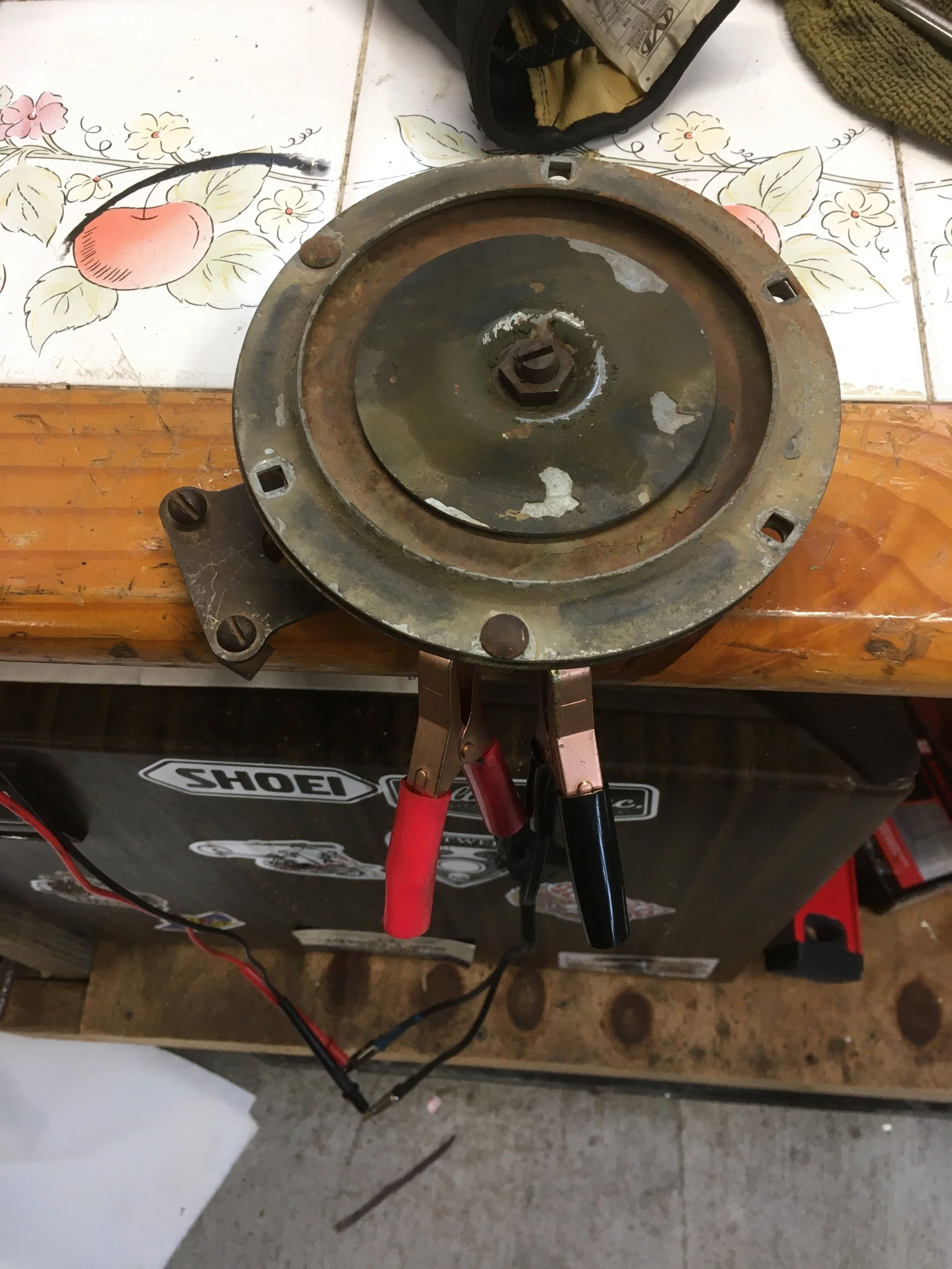 Horn rebuild. Someone had been inside here before and had the points way out of adjustment. After getting everything where it should be and adjusted I now have a working horn.